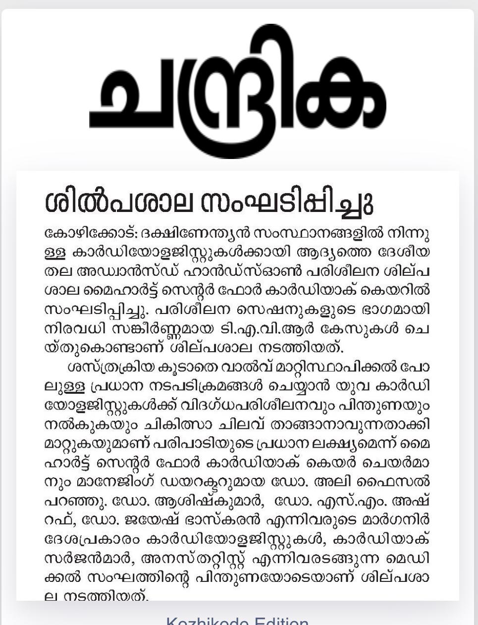 മൈഹാർട്ട് സെന്‍റർ ഫോർ കാർഡിയാക് കെയറിൽ ദേശീയതല ശില്പശാല സംഘടിപ്പിച്ചു
