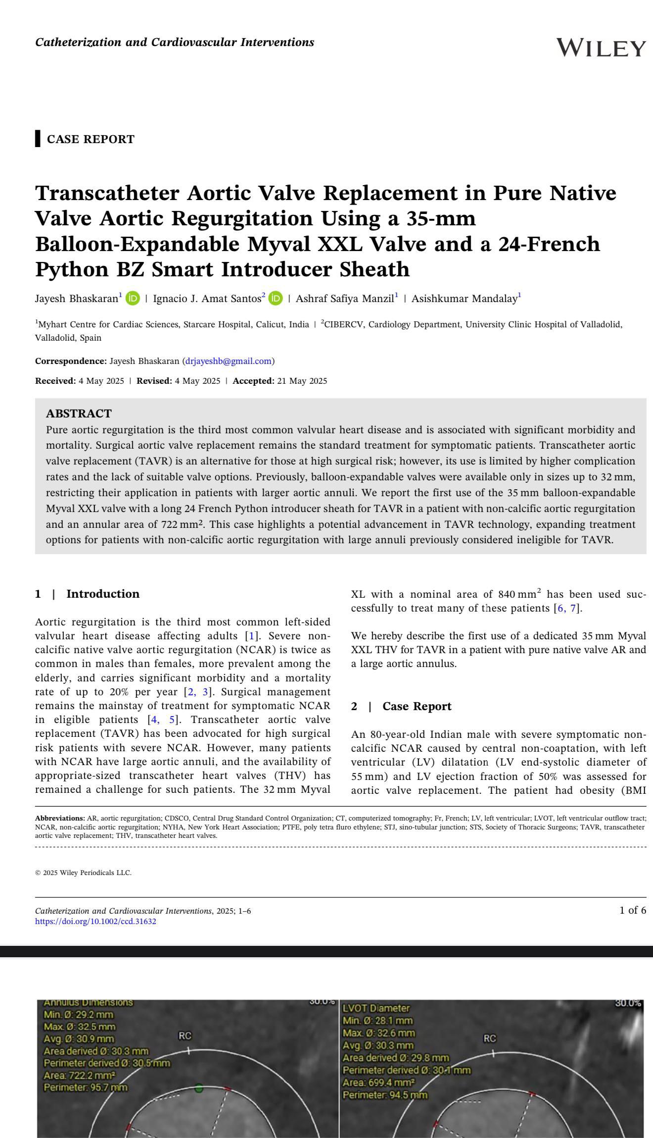 Groundbreaking Case Report on World’s First 35mm myVal TAVI Implant for Aortic Regurgitation Featured in Catheterization and Cardiovascular Interventions
